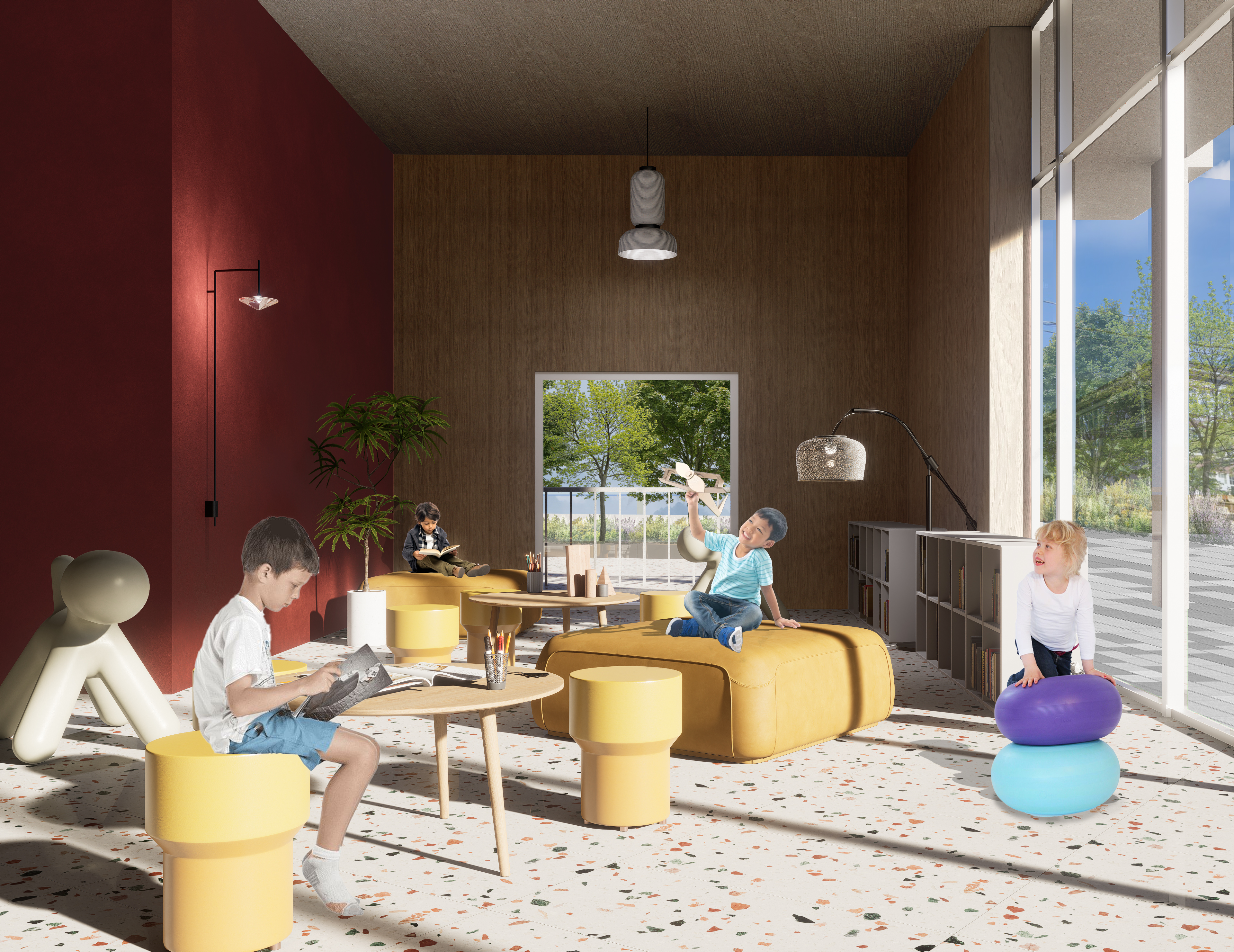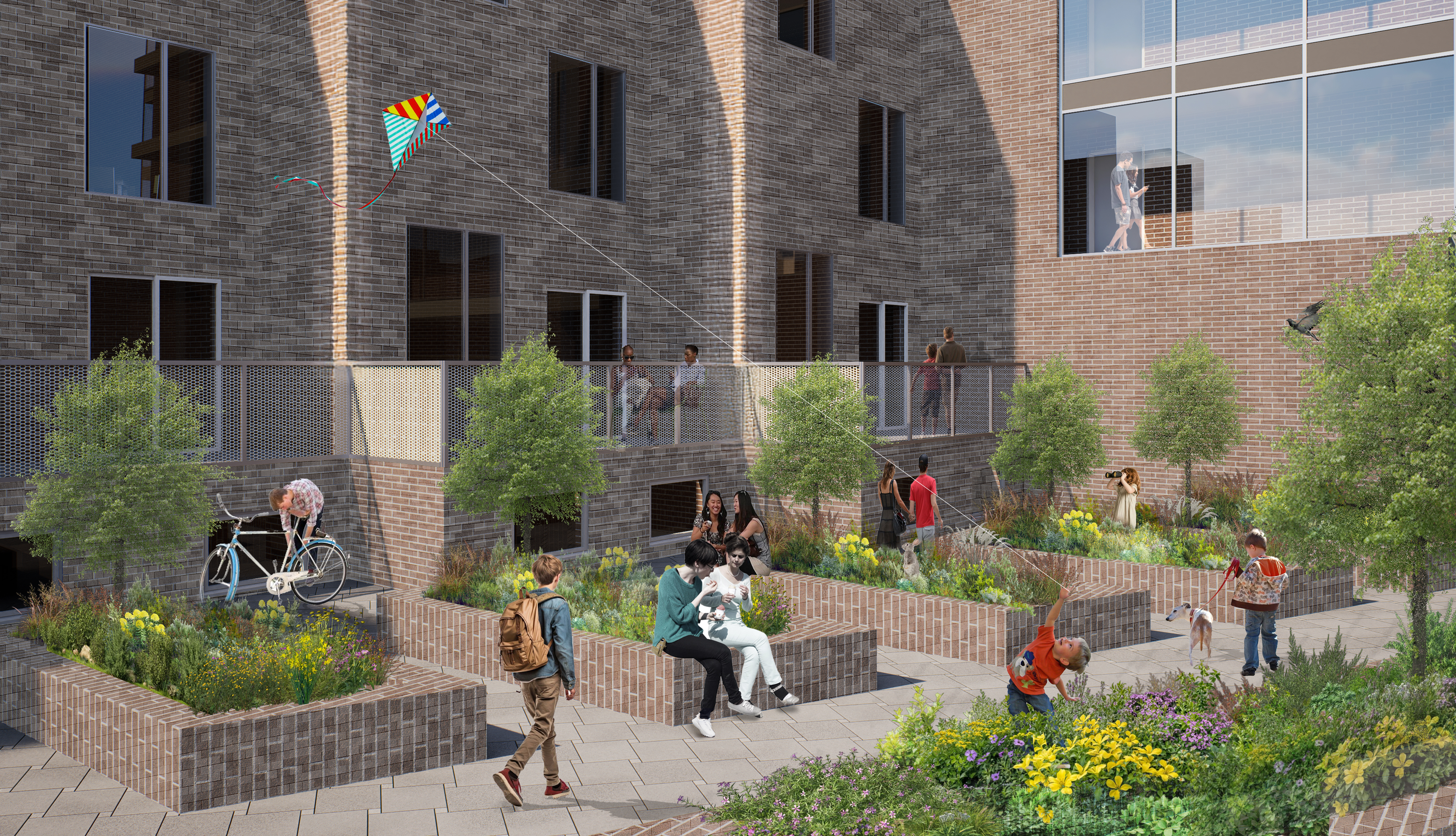 Beyond its surface, Ecotone creates a layered spatial system that connects residents across different scales. Moving through the building reveals a sequence of thresholds, from the façade to a communal courtyard, through open-air circulation paths, and finally out toward the neighbouring park. Each layer invites a different kind of encounter, blending privacy and openness to encourage social connection. The courtyard becomes the heart of the project, where residents can gather, rest, and engage with one another informally.