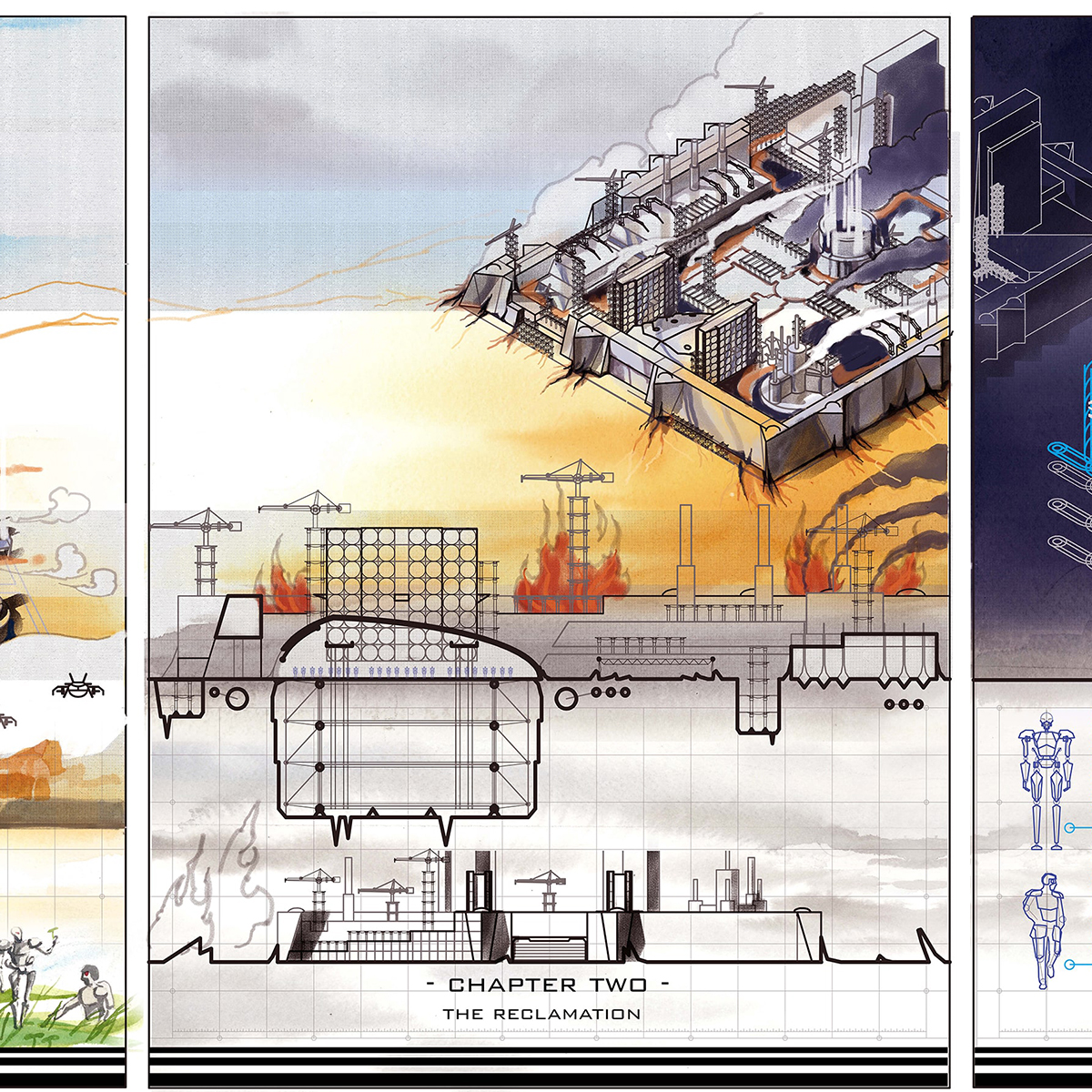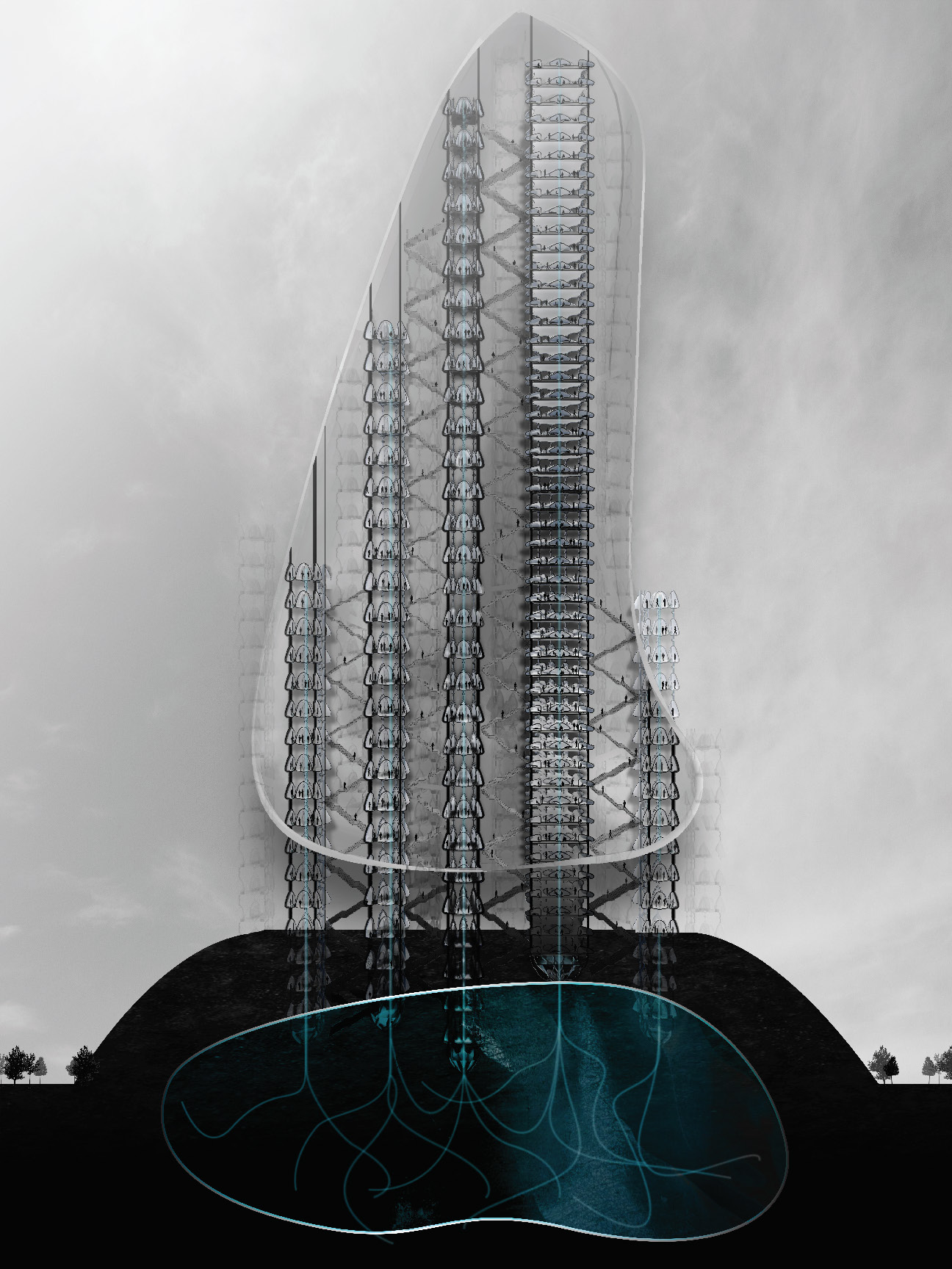 Due to the environmental destruction and high resource consumption of the Homo Automotivis, the use of all gas-guzzling automobiles has been banned. With the damnation of the Homo Automotivis came the extinction of the Suburb. The existing infrastructure that used to serve the Homo Automotivis now has a new function; it serves as home, garden, and public space. The small self-sustaining communities of the highways are navigable by environmentally-friendly means. As a result, the spaces that were previously congested by the automobile are now accessible to all.