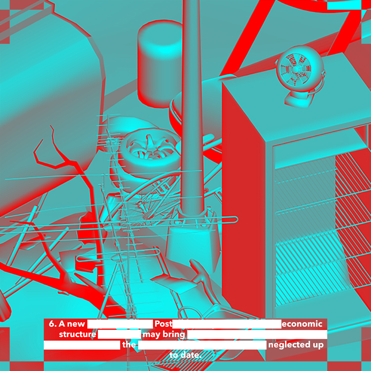 The work presented revisits the 9 points of monumentality, whereby editing the text into an ad-lib we are left with a broader notion of what can be interpreted. These new lines, without the historical baggage, are paired with snapshots of our digital dumpster dive composed of real objects scanned into 3D, or purely virtual objects. The distinction here bares no difference.