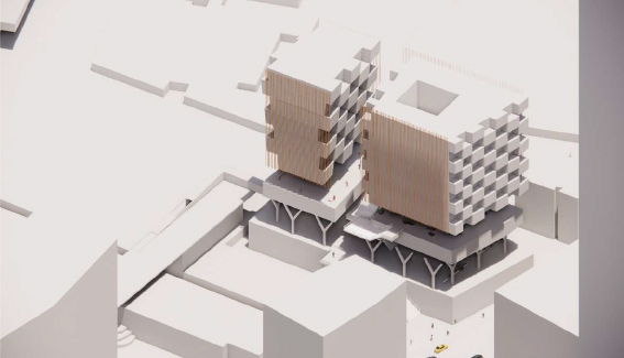 Atlanta, also known as “the city in a forest”, has driven our overall design and intentions, putting all of our focus towards a sense of community, greenery, and movement. We adapted our design to visually represent these traits, like the roots of a tree, including a skybridge to the metro station being yet an- other branch. As greenery is important in Atlanta, we decided to embrace what was missing in a rather urban site location. The design demonstrates movement through its protruding patterns on its exterior as well as through the connecting pathway leading back to the metro station itself, making transit eas- ily accessible. By analyzing the site before diving into the massing, we gained insight into the physical and super-physical components of Atlanta, revealing a need for natural light to be properly accessible, shown through our forms for the two main buildings that are not perfectly rectangular. With the influx of creativity in the immediate site context, we were able incorporate a unique structure and an outdoor podium for theatrical performances. Overall, our design and intentions blend together to create a form encouraging a breathable and transparent environment, working together with a warm, welcoming, and convenient community.