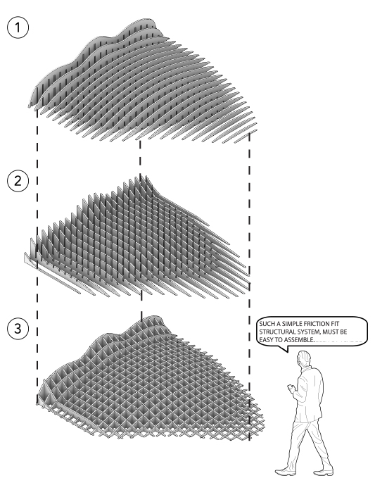 Physical and mental wellbeing are fundamental factors when it comes to maintaining a healthy lifestyle. Studies have shown that stretching can help promote a healthy lifestyle while rWeducing anxiety and depression. We designed a form conducive to stretching so it can promote better physical and mental health amongst the community while not creating an environment that resembles a gym. The designed seating configurations are generated based on an analysis of forms that are conducive for stretching. These forms offer individuals an opportunity to stretch, relax, socialize and enjoy their local environment while being away from their devices. This urban seating system is intended to be deployed in various sections of the city. Parks, residential communities or commercial districts can all benefit from this urban furniture. The use of a plywood waffle system allows for strong easy to assemble furniture. 4ft by 8ft sheets of 3⁄4 inch plywood are the only material necessary to construct this furniture and the design makes use of all off-cuts leaving no waste. The cavities naturally created by the waffle structure allow for plants to grow within the bench and for precipitation to not collect on the benches’ usable surfaces. Hopefully this sustainable urban landscape can contribute to a renewed urban experience for individuals all around the world