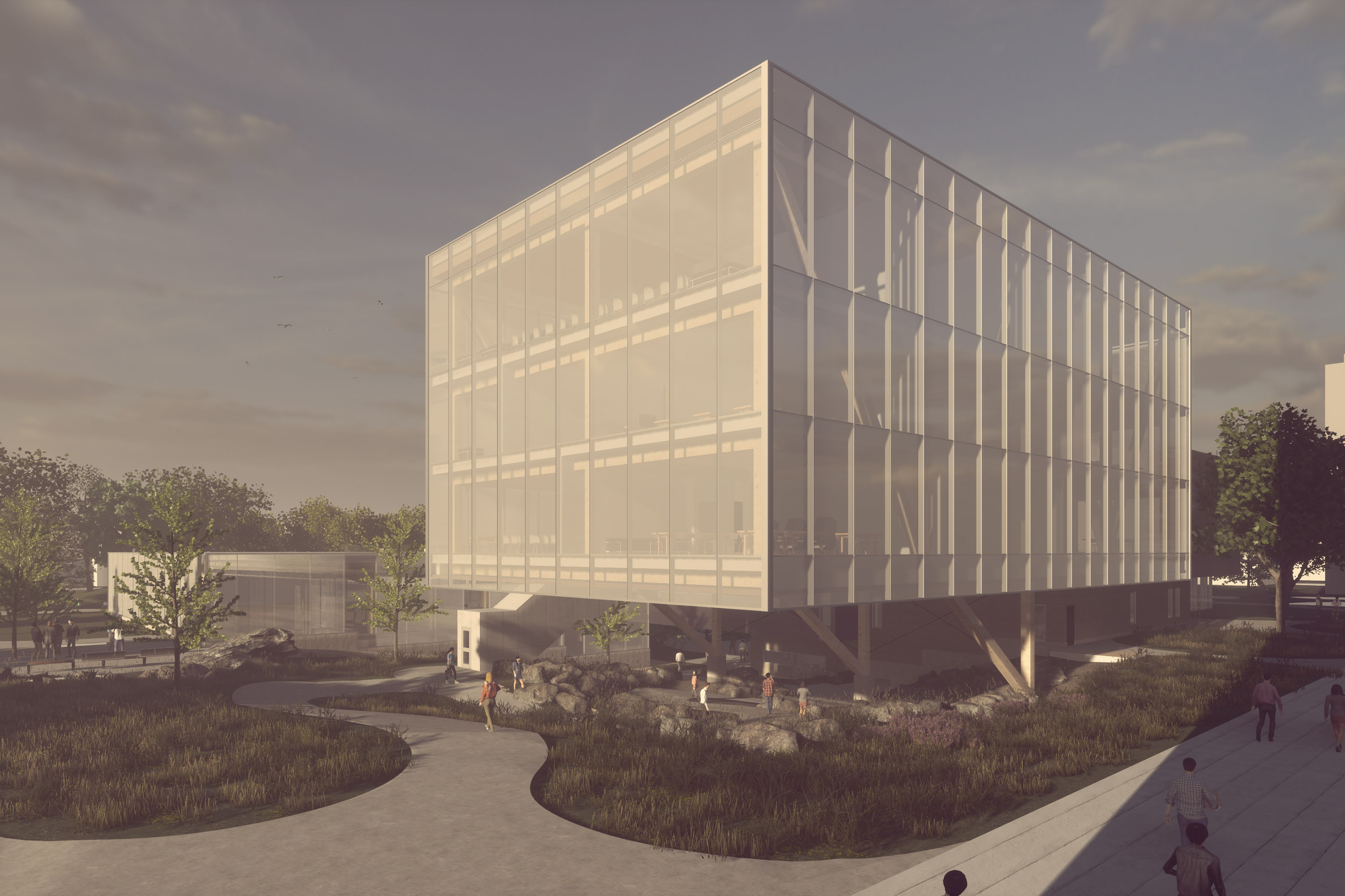 As a result of the reallocation of TDSB land southwest of the Bloor Street W and Dufferin Street intersection in Toronto, Canada, a new city high school is needed to replace the old school that was demolished to make way for a mixed-use residential development. Dufferin Grove Park is a prominent space within the community that contains an abundance of greenery and natural landscaping. To combat the lack of connection to the park in the neighbourhood, this proposal intends to introduce new landscaped area into the urban context and extend the great community space of the park. A new public park is positioned to the west of the site, acting as a buffer between the active school and future high-density mixed-use developments to the east and the small-scale residential to the west. The school is designed using a mass timber structure and integrates passive sustainability strategies to increase the building’s energy performance while providing a direct connection to the landscape implemented on the site. With a specific and thorough material selection and arrangement, the building aims to control daylight to passively light interior spaces depending on their needs. The translucent façade of the ‘Creative Block’, positioned at the southeast corner of the site, aims to activate the public realm by allowing pedestrians to see the movement and activity taking place inside while maintaining a level of curiosity and solar control. The façade of the classroom block is comprised of operable perforated panels that allow users to control daylighting and solar heat gain. The lobby and student commons are located toward the northeast corner of the site to accommodate access from Bloor Street. The gymnasium is situated directly across from Brockton Stadium for a connection between indoor and outdoor recreation. A community amphitheatre is positioned in the centre of the site, opening onto the landscaped courtyard space that funnels visitors into the heart of the institution, increasing social interaction within the school and community.