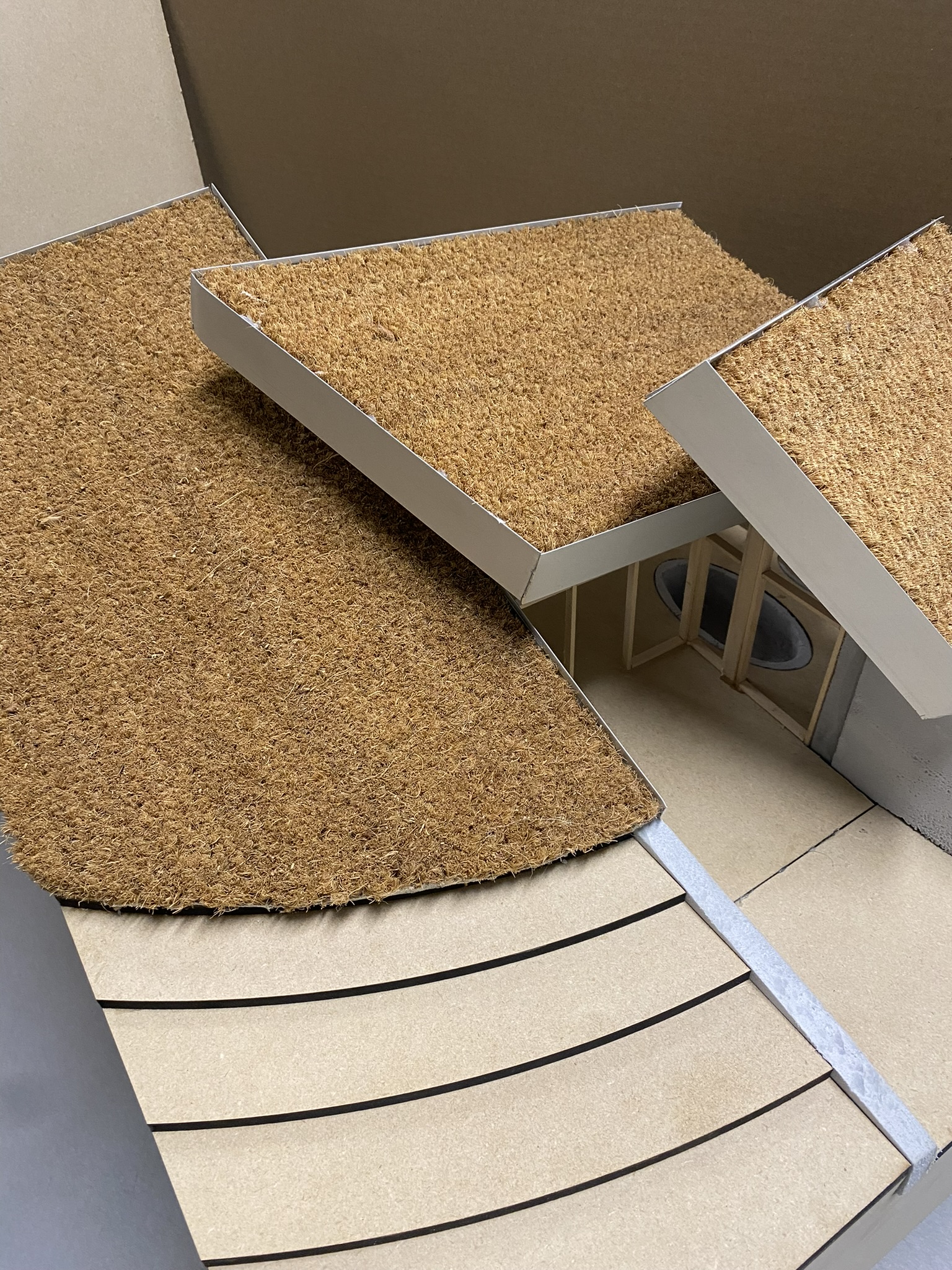 The Scadding Court Community Hub emphasizes civic architecture's role in shaping social cities that advocate for environmental sustainability. By elevating human experiences and alleviating street congestion, the hub assists the human scale through porous urban programs. The building design performs as a landscape, bringing people to Alexandra Park on or under canopies that support cycling safety and welcome individual and multicultural ownership. A plan with familiar programs but an organic shell facilitates an ungoverned environment staged for personal connection. The form rejects specialized components typically associated with organic structures and uses the reconfiguration of structural modules to reduce embodied carbon. Keeping the elevation low and oblique reduces glazing and enables individual roof surfaces to group functional requirements, such as passive energy strategies, that different assemblies would often separate. While cities evolve based on competing architectural bodies, the civic landscape generally morphs based on its surroundings. The hub challenges the "building-first" mindset that often results in neglected parks, reframing green spaces as active community assets that dictate our buildings rather than becoming afterthoughts. The design minimizes an architectural presence to create a strong engagement with the natural space, creating a sense of care that inspires communities to preserve it. By strengthening this connection, communities see their natural parks as social builders to be woven within cities more. Ultimately, the plan engages the public in reassessing their agency with Toronto green spaces and their dependence on the surrounding buildings.