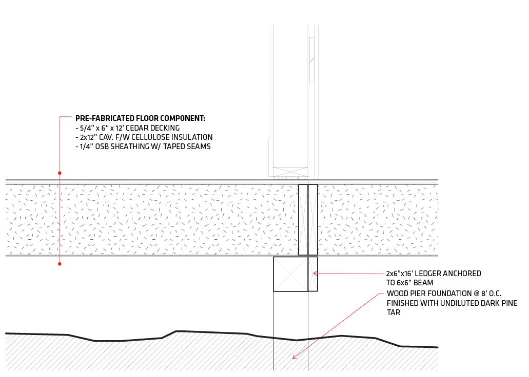 The components are then converted to construction drawings and prefabricated off-site. After fabrication, the components are efficiently stacked onto a standard truck bed and delivered to the site for assembly. The assembly process demands participation as dwellers assemble the pieces, they designed using the design tool. Component size and weight were considered to ensure safe assembly by a small team of amateur builders. Participation at this point in the dwelling process allows the dweller to physically engage with the materials and develop an understanding of where they were sourced and their environmental impact.