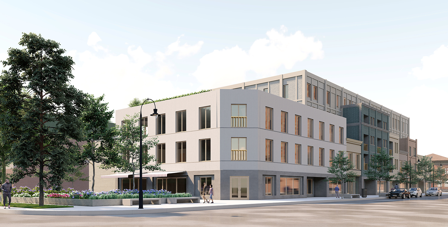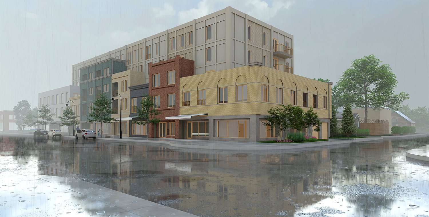 The mixed use mid-rise located in the Bloor West Village respects the surrounding context through an understanding of the rhythm, character and material articulation of the store fronts along Bloor. The design aims to be a ‘good neighbor’ internally and externally. The organization of spaces, including the townhouses at the rear of the site, ensures that the surrounding residential neighbourhood has a subtle transition to the 5 storey building. The use of exterior green spaces for gathering promotes neighbourly interactions for users, and this translates into the interior with the atrium space which creates a secondary facade for access to light, and furthers interactions with residents in an area that reinforces a healthy environment through biophilic design strategies. Ultimately, this design sets a precedent for the community as it is a reminder that new designs can pay homage to the existing architectural character of the site, and not impede on the heritage value of a thriving community.