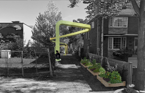 Dunn Ave Parkette: This initiative looks to create a year round space for gardening and urban agriculture through the intervention of a greenhouse structure. This would provide food security year round, a communal space for gatherings and events, and improve the overall experience of the locals in the neighbourhood. The greenhouse will also look to establish itself alongside the existing church to utilize the pre-existing resources and services.