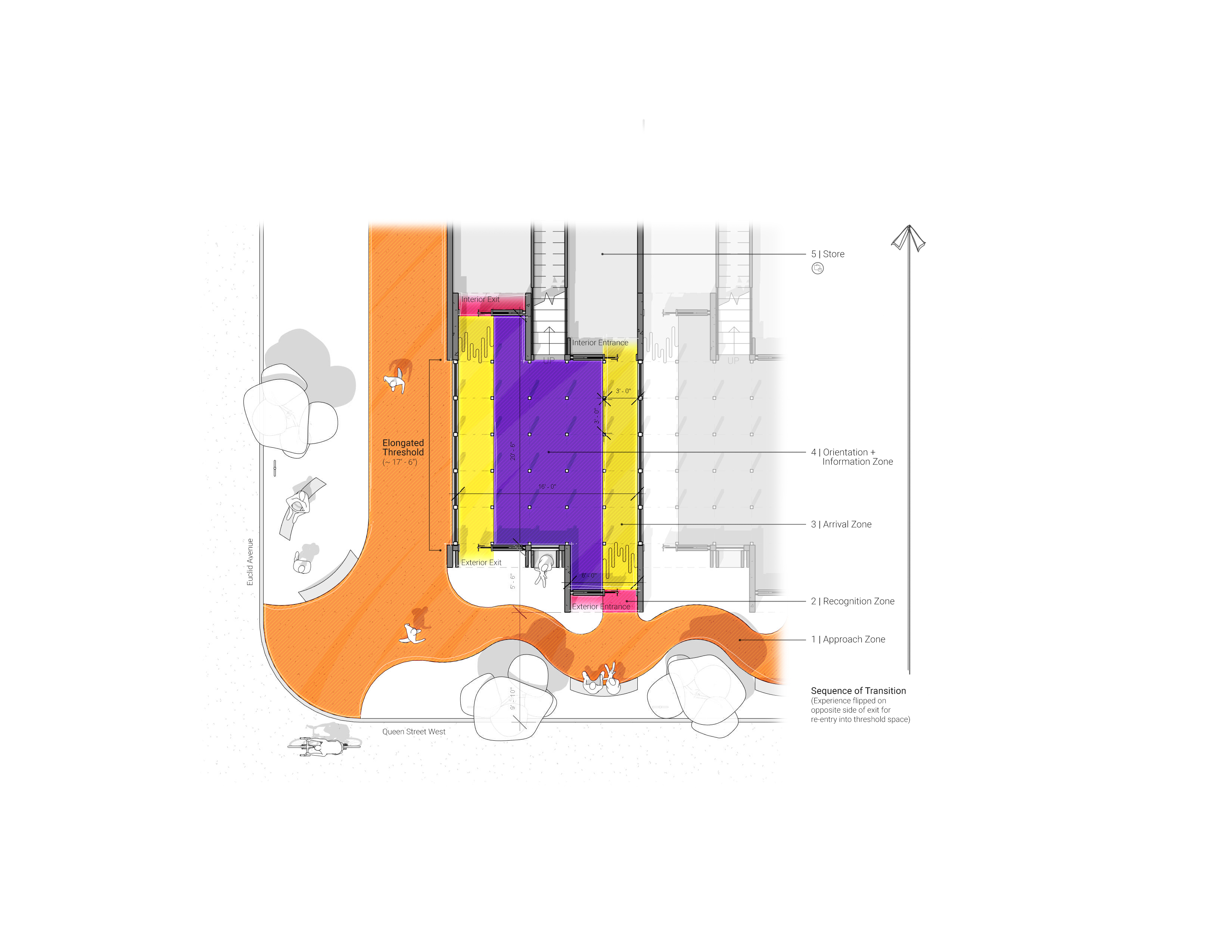 Edges of architecture and the body define spatial relationships that influence the preservation and/or deterioration of human health. Proxemics during historical infectious diseases, as well as the recent realities of the COVID-19 experience, have demonstrated the physical health benefits of an elongated threshold. However, the methods used to create the extension of space necessary for proper physical distancing has also revealed the inefficient conditions of spatial and structural thinness of contemporary urban storefronts. Thin architectural entrances do not provide the interstitial depths necessary for accommodating secure distances and interactions between bodies in public settings. The phenomenon of physical objects being tactically reappropriated as appendages oftypical streetscape façadesmaterializes the need forthickening the entry sequence. This thesis aims to investigate how the elongated threshold can develop an entrance system that achieves dynamic opportunities of accessibility and provides corporal and social healthfulness during pandemic and post-pandemic periods.