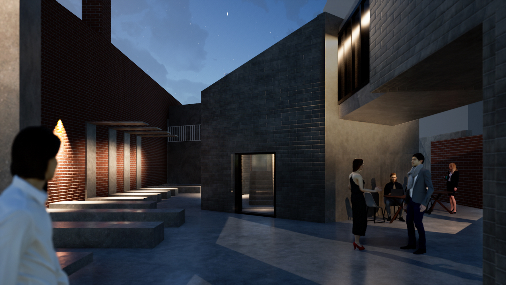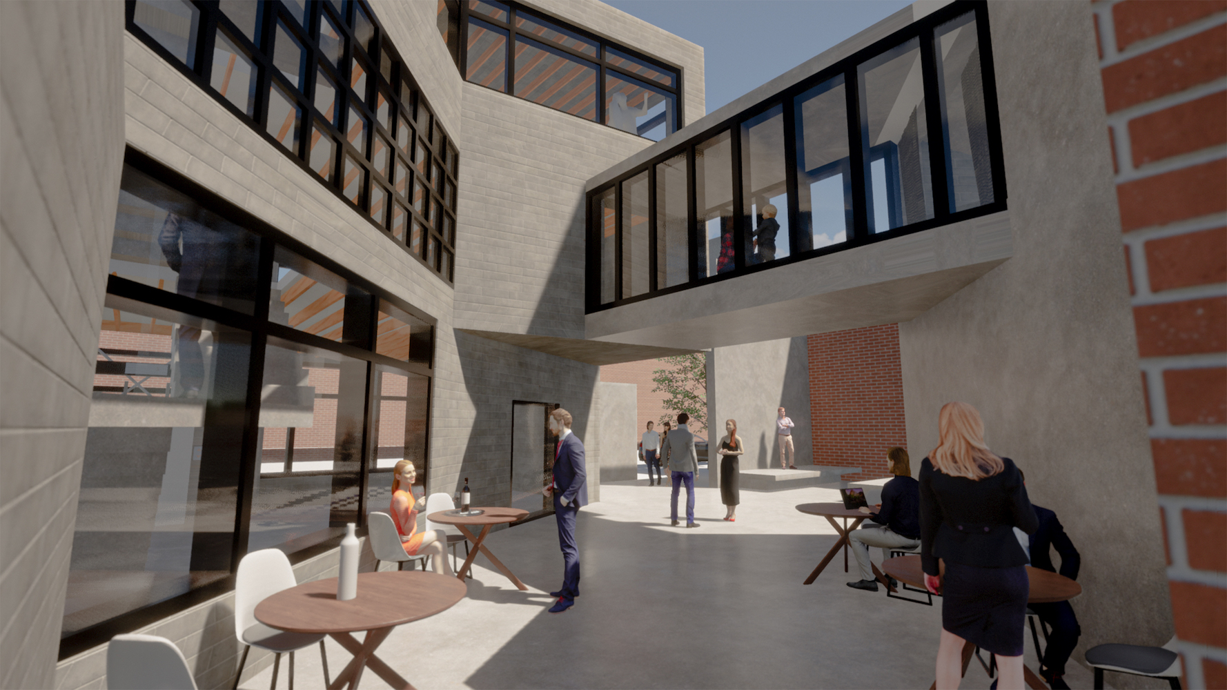 The thought of movement is further expressed in the protruding staircase which jets out of the café massing. Covered in vertical glazings, the activity between floors is further showcased.
